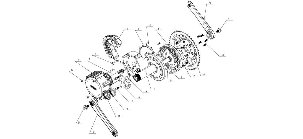 | 7 | Gasket controller side | 18 | Chainring screws |